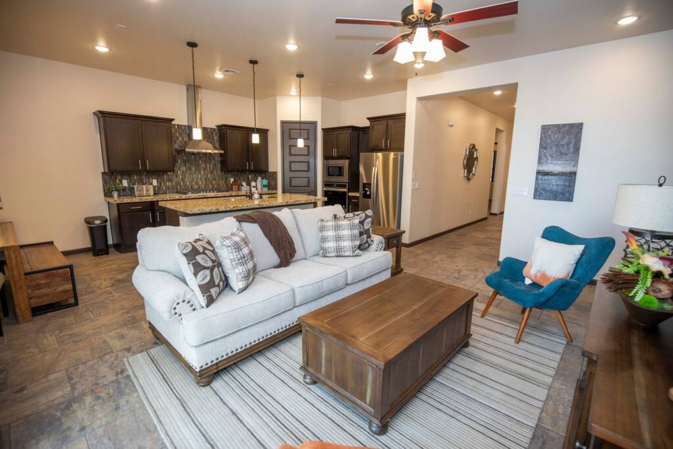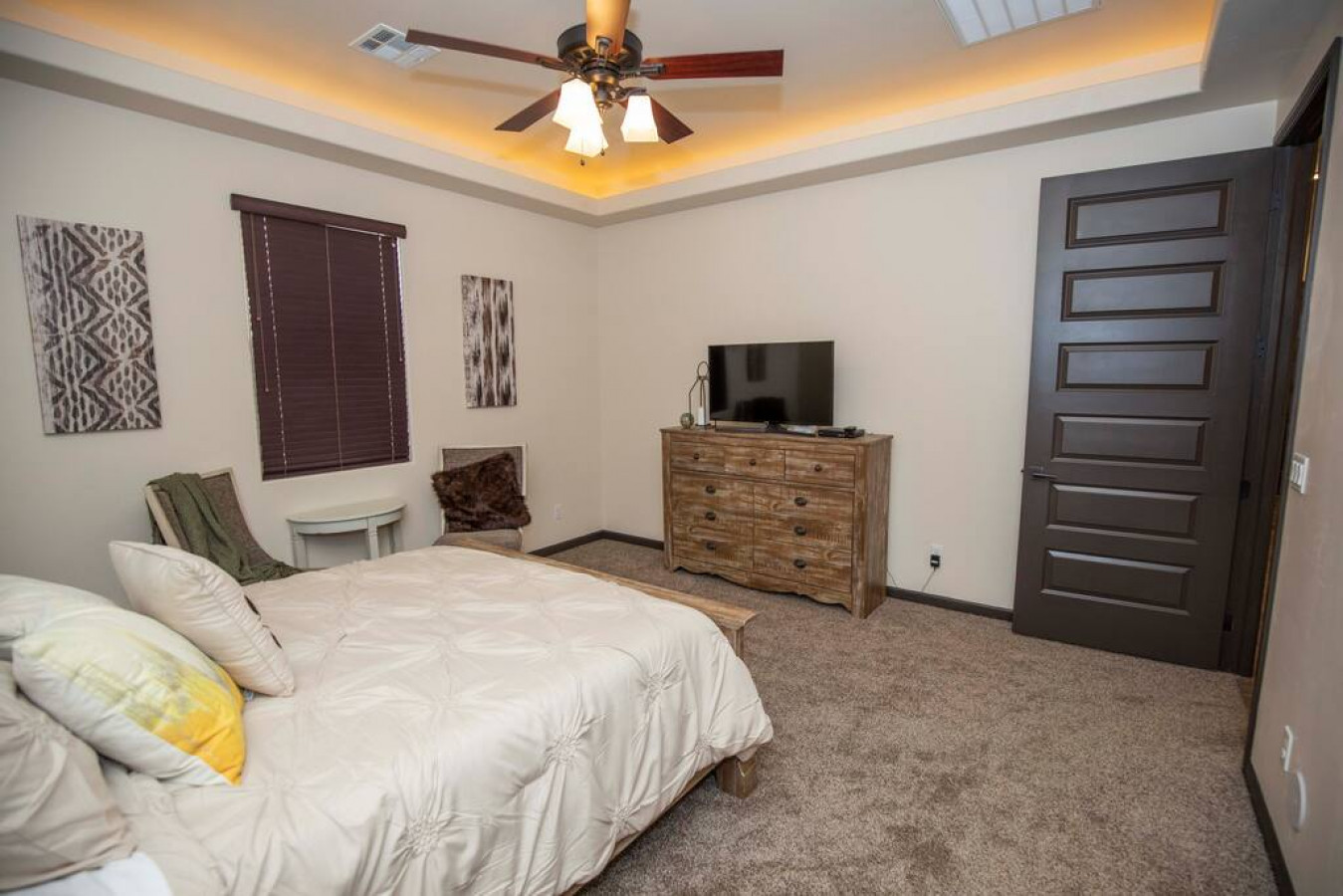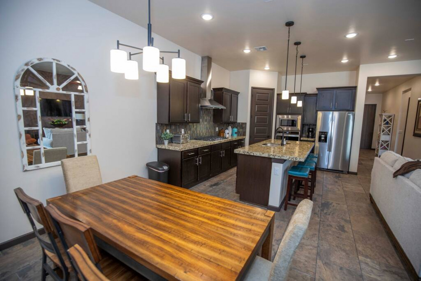 / night* Luxurious new home in a desirable and upscale part of Las Cruces.There are three bedrooms with a total of 5 beds, all with comfortable beds and new decor, and 2 bathrooms. * Fully sanitized between guests, wiping down all commonly touched surfaces in addition to a thorough cleaning. Please reach out with any questions on this. * Granite counters, soaking tub, wood-look tile floors. * Central refrigerated air conditioning. * Fast Wifi of 300 Mbps - perfect for working or doing homework from home. * The kitchen has all granite counters and is fully stocked with dishes, cookware, glassware, etc. * Provided soap, shampoo and conditioner and lots of fluffy towels. * Washer and dryer for your convenience on longer stays. * Laptop-friendly workspace, office, work space * Self check-in keyless entry for your convenience * Smart tv with streaming app accessibility * Kid friendly, books, games, toys. * Pet Friendly, accepted on a case by case basis. Must get permission first. $45/ per dog * Portable crib and high chair upon request * White Sands National Park , Igloo cooler upon request. Sleds can be rented at White Sands. * Enjoy relaxing indoor-outdoor living with our 330 days a year of sunshine and gorgeous views of the Organ Mountains. * Full access to the property *This property does not have garage access *This property does not have pool access * Very safe neighborhood that is convenient for freeway access to be anywhere in town in just a few minutes, shopping, restaurants, parks, splash pad, mountain biking. * Good for visiting White Sands National Monument, Spaceport America, or WSMR and NASA facilities.