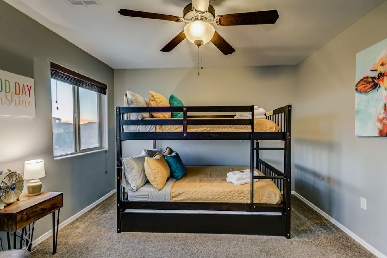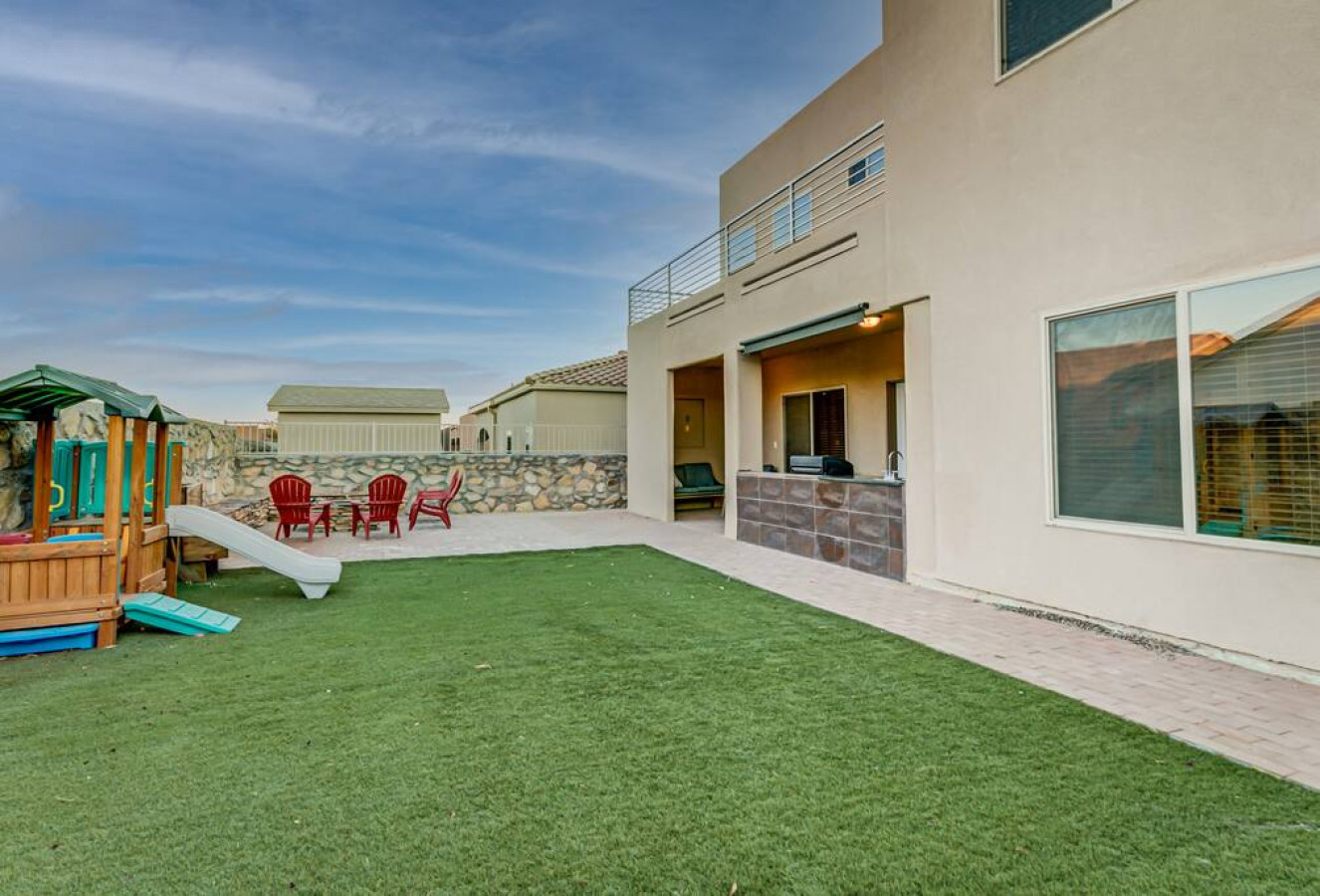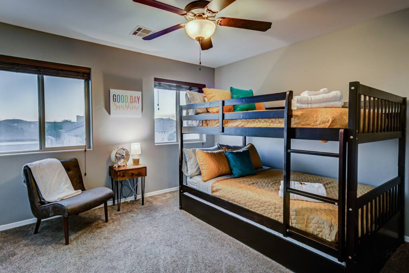 / night* Space for the entire family plus some. Kid friendly with child locks. 5 bedrooms, 3 full bathrooms and comfortable beds. 3 baths and 5 bedrooms, with comfortable beds, including a king, 3 queens, a full bunk bed with a twin trundle, day bed, pack n play, and toddler "Harry Potter" bed under the stairs. We have a game room and a weight room. * Fully sanitized between guests, wiping down all commonly touched surfaces in addition to a thorough cleaning. Please reach out with any questions on this. * Granite counters, soaking tub, wood-look tile floors. * Central refrigerated air conditioning. * Fast Wifi of 300 Mbps - perfect for working or doing homework from home. * The kitchen has all granite counters and is fully stocked with dishes, cookware, glassware, etc. * Provided soap, shampoo and conditioner and lots of fluffy towels. * Washer and dryer for your convenience on longer stays and a two-car garage to park your car. * Laptop-friendly workspace, office, work space * Self check-in keyless entry for your convenience * Smart tv with streaming app accessibility * Kid friendly, books, games, toys. * Pet Friendly, accepted on a case by case basis. Must get permission first. $45/ per dog * Portable crib and high chair upon request * White Sands National Park , Igloo cooler upon request. for sled options please contact us. * Enjoy relaxing indoor-outdoor living with our 330 days a year of sunshine and gorgeous views of the Organ Mountains. * Full access to the property, no amenities are shared *This property has garage access *This property does not have pool access * Very safe neighborhood that is convenient for freeway access to be anywhere in town in just a few minutes, shopping, restaurants, parks, splash pad, mountain biking. * Good for visiting White Sands National Monument, Spaceport America, or WSMR and NASA facilities. * As part of our effort to help you relax and enjoy your stay, we have partnered with Safely.com to provide you with accidental damage protection. The cost of this protection has been included in your rental rate and fees and covers you for accidental damages during your stay.