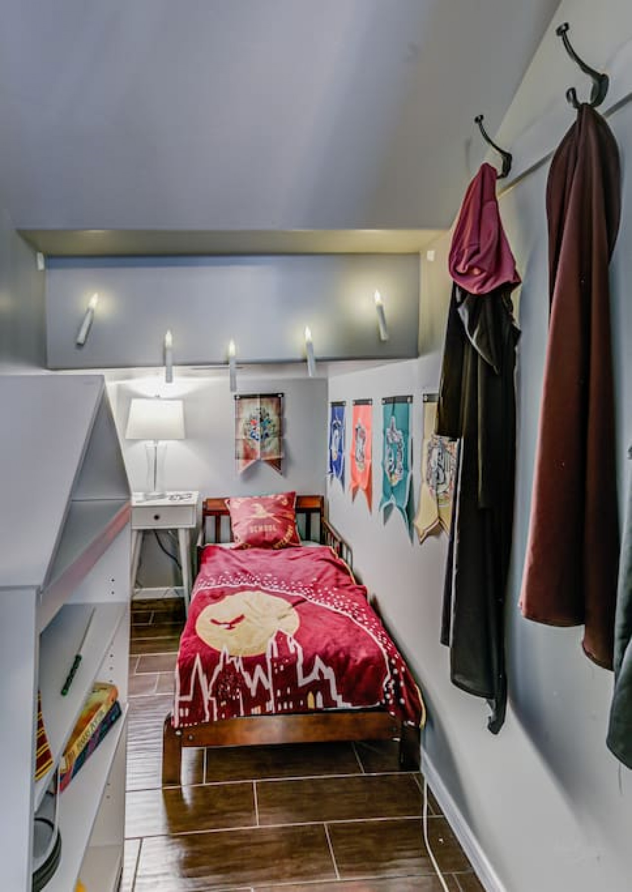 January 2026 5.00Spacious, clean, and functional for a large group. The beds were comfy, the water pressure was great, and the Harry Potter secret room was adorable.