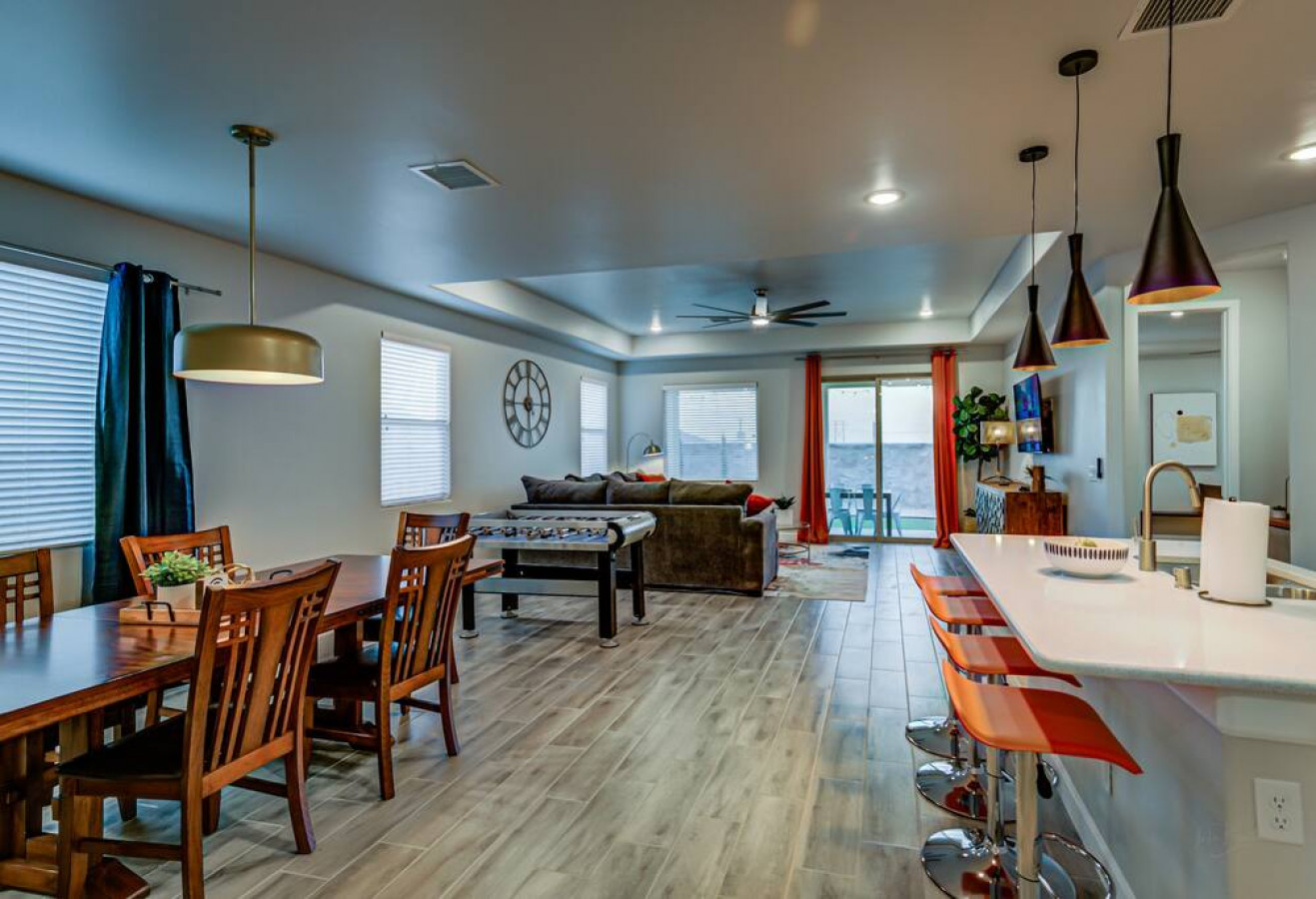 Such a beautifuly decorated home, perfect layout with 2 master bedrooms. The fire pit, horse shoes and neighborhood park were some of our favorite perks! Location is kind of in on the outskirts in a new development so there was construction and our GPS had a hard time locating it sometimes. All around though was a wondeful stay. I was very impressed with the cleanliness