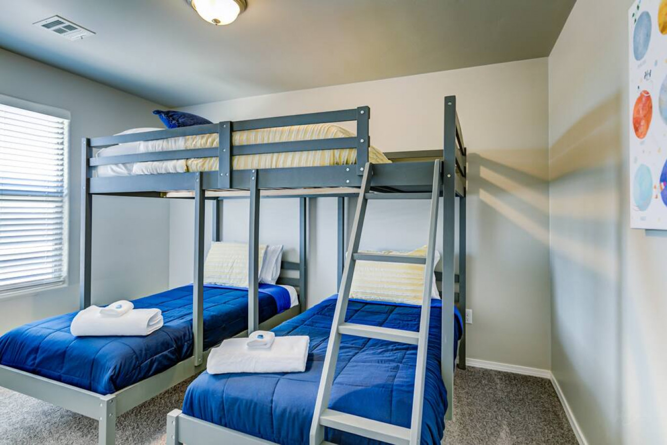 This place was incredible for our stay. We had plenty of room and loved the open space in the kitchen, dining area and living area. The bedrooms were roomy and very comfortable. I shared the bunkbed room with two other adults and was very comfortable .