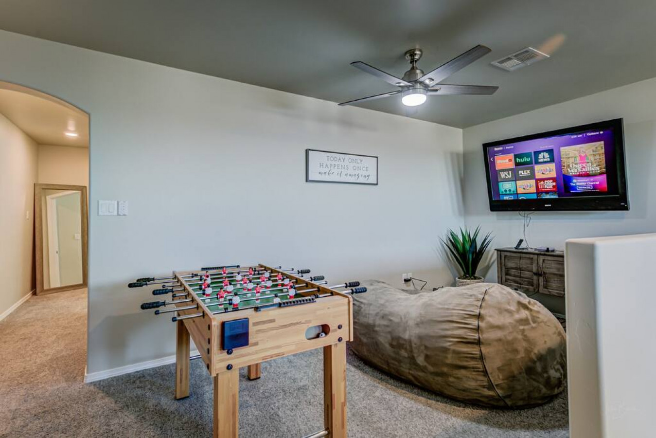 We only stayed overnight, so we didn’t get to explore or anything, but we still really enjoyed staying here. It’s a beautiful new home in a nice, quiet seeming neighborhood. Slightly difficult for us to get to due to construction/road closures at the time and it being so new, but it wasn’t too bad and it was a breeze actually getting inside the house. I’m sure it’s even easier finding the house when it’s not late and very dark outside. Super clean and cozy place. Lots of blankets and pillows in the rooms. The beds were genuinely really comfortable. Plenty of space for the 5 of us. The little game room loft area is perfect for kiddos. My kids are nearly adults, but I wouldn’t have felt uneasy having young kids there. It felt very safe and home-y. There was all the essentials and more. Bryce left a little welcome basket with some snacks and drinks (lifesaver!) and recommendations of places to see/visit/eat. Definitely a pleasant experience staying here at Bryce’s.